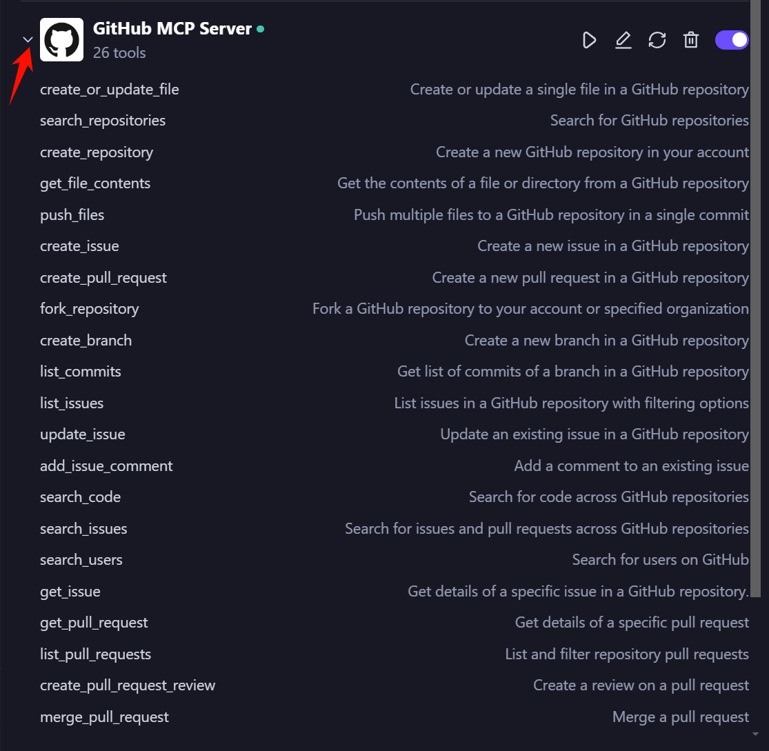 In the MCP servers list, click on the installed MCP server to view the list of tools it provides.