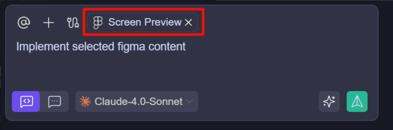Once successfully imported into the IDE, it will be displayed in the conversation panel. At this point, you can input your requirements in the input box to automatically generate production code.
