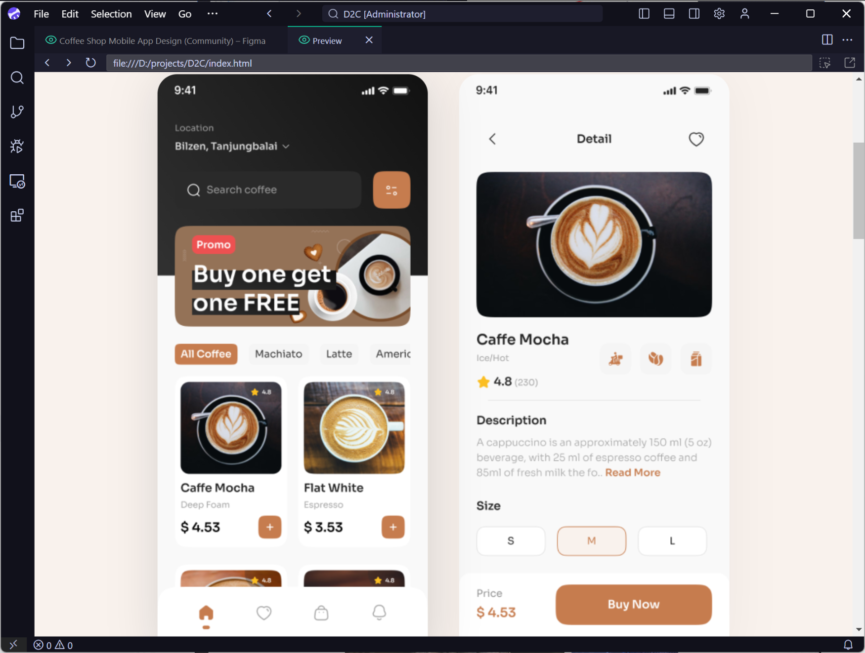 After converting the Figma design into code, the Preview effect is shown below, and you can see that the accuracy is very high.