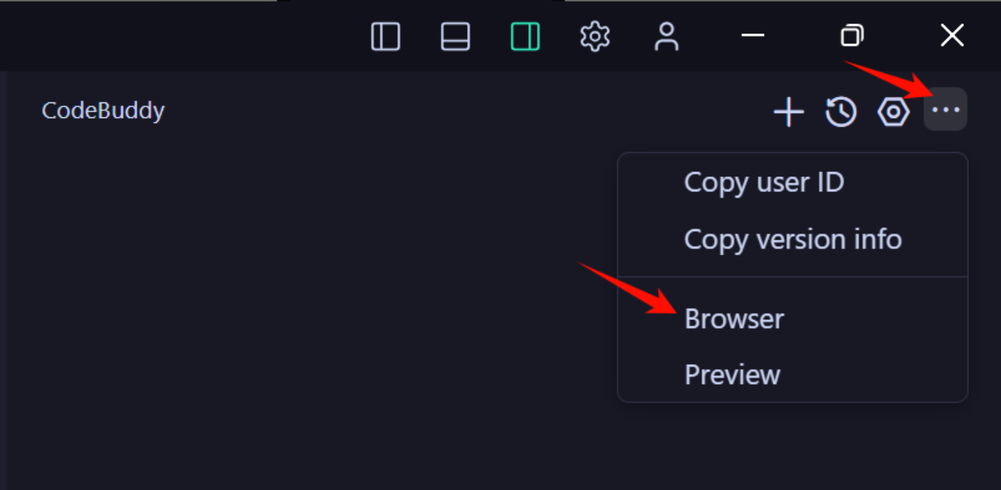You can click Open Browser in the top-right corner of the IDE, which will default to the CodeBuddy IDE homepage. You can also access other URLs.