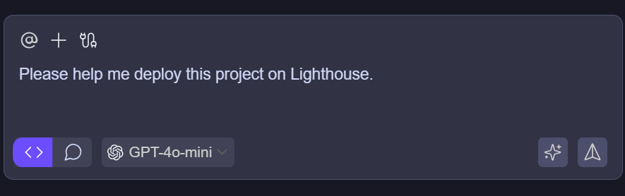 Once you have successfully connected to Lighthouse, you can trigger the project deployment as follows: