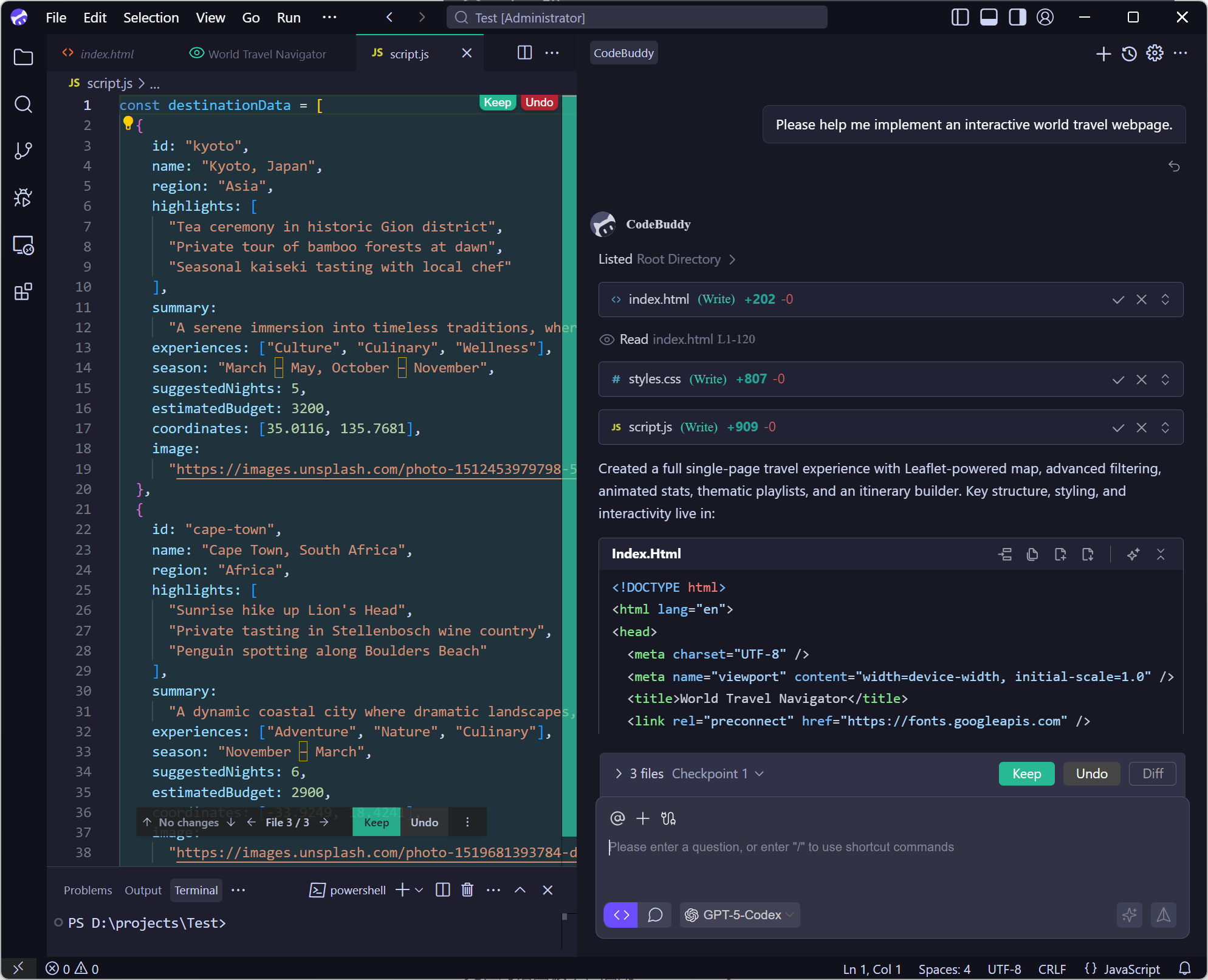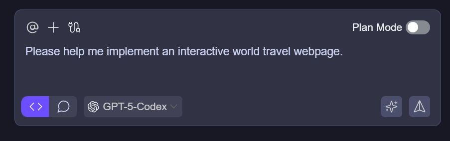 Taking the example of the "Build a world travel website" requirement, input the requirement under Agent Mode, as shown below: