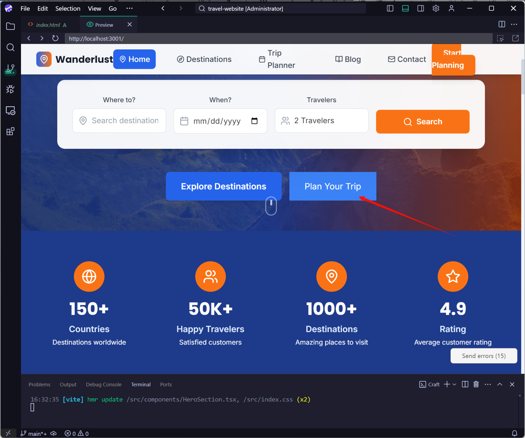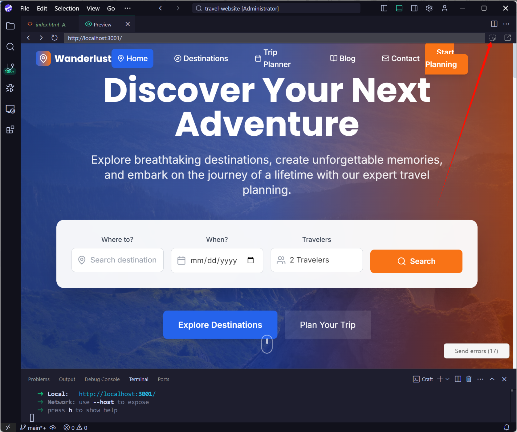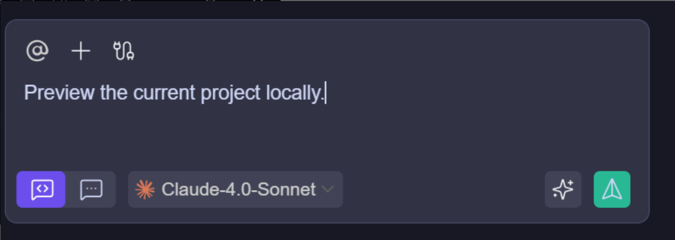 Or manually input a Prompt to trigger the Agent to open Preview, enabling real-time preview of the runtime effect, for example: