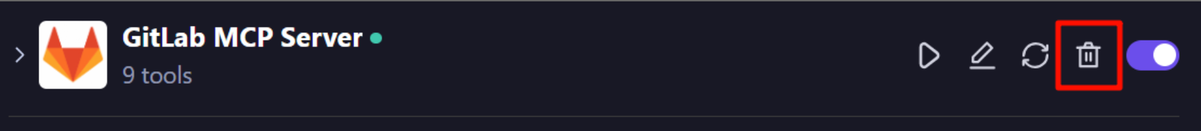 If you no longer need an MCP Server, you can delete it. This will also remove its configuration from the JSON file. To use it again, you’ll need to reinstall the MCP Server.
