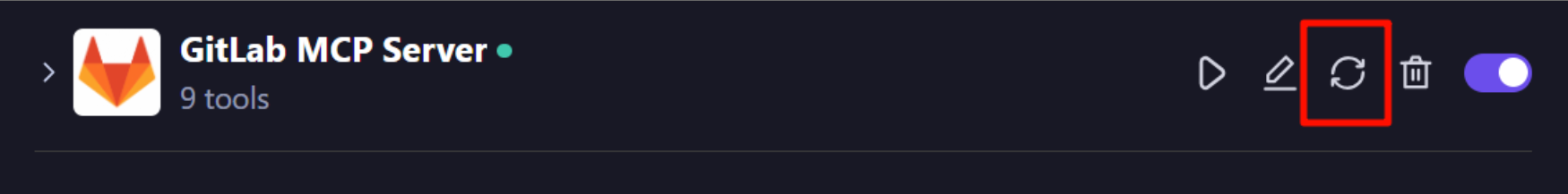 If you’ve toggled the enabled/disabled status of an MCP Server but the change isn’t reflected, or if you’ve updated the JSON configuration file and the status still appears incorrect, use the Refresh option to reload the list.