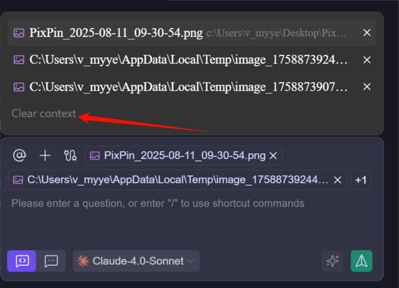 Press "Clear context" at the bottom of the list to remove all images at once.