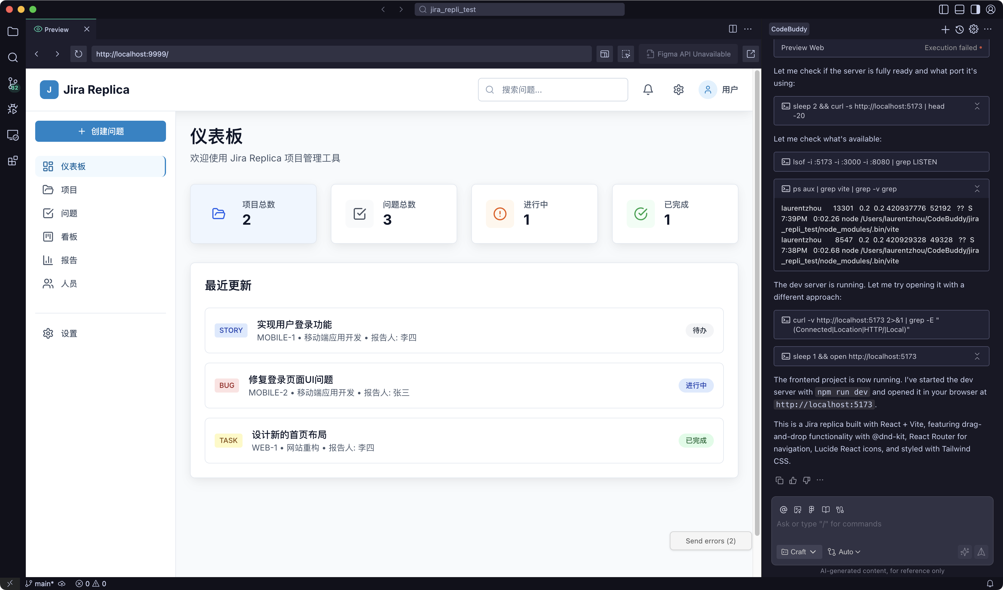 CodeBuddy IDE supports automatic rendering of code changes via a browser kernel, allowing you to instantly view the running effect of the current project code without switching tools or manually starting services, achieving real-time debugging and preview.
