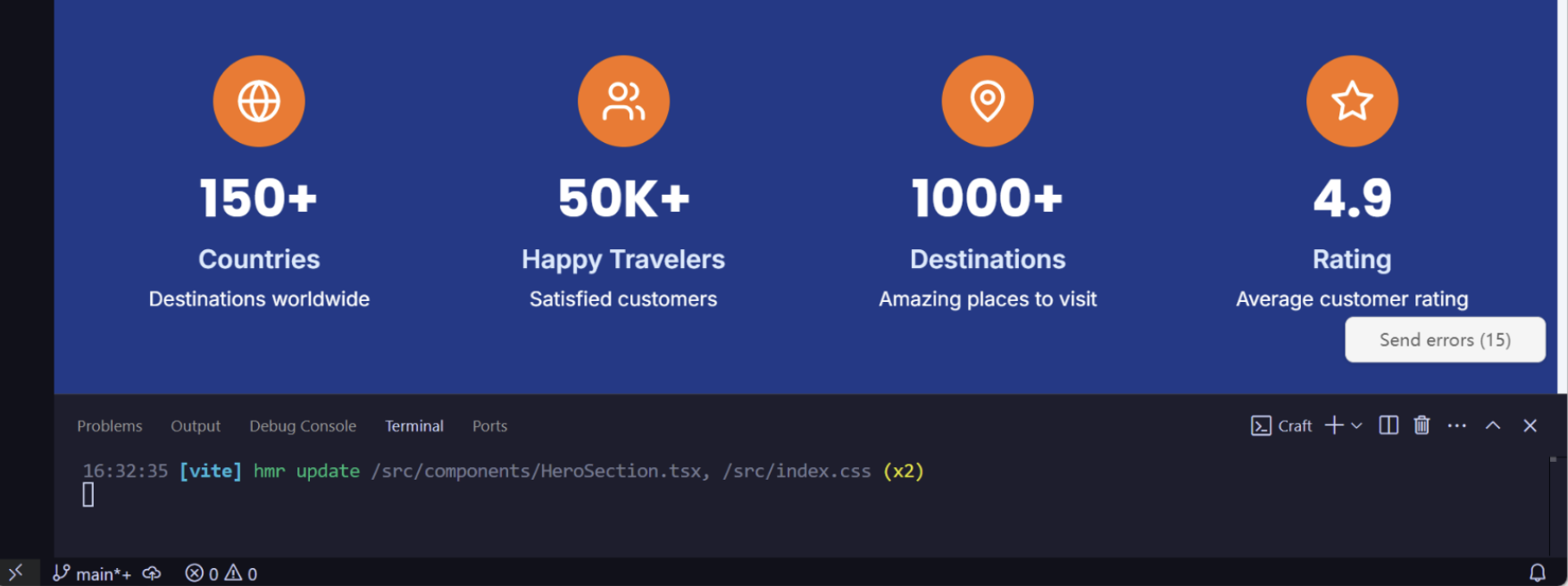 Click "send errors" to send errors to the conversation, and AI will automatically fix them.